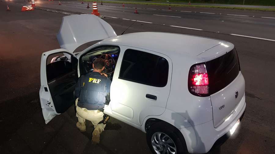 Após abordagem orientada pelo setor de inteligência, os policiais interceptaram um Uno que vinha de Santa Catarina.
