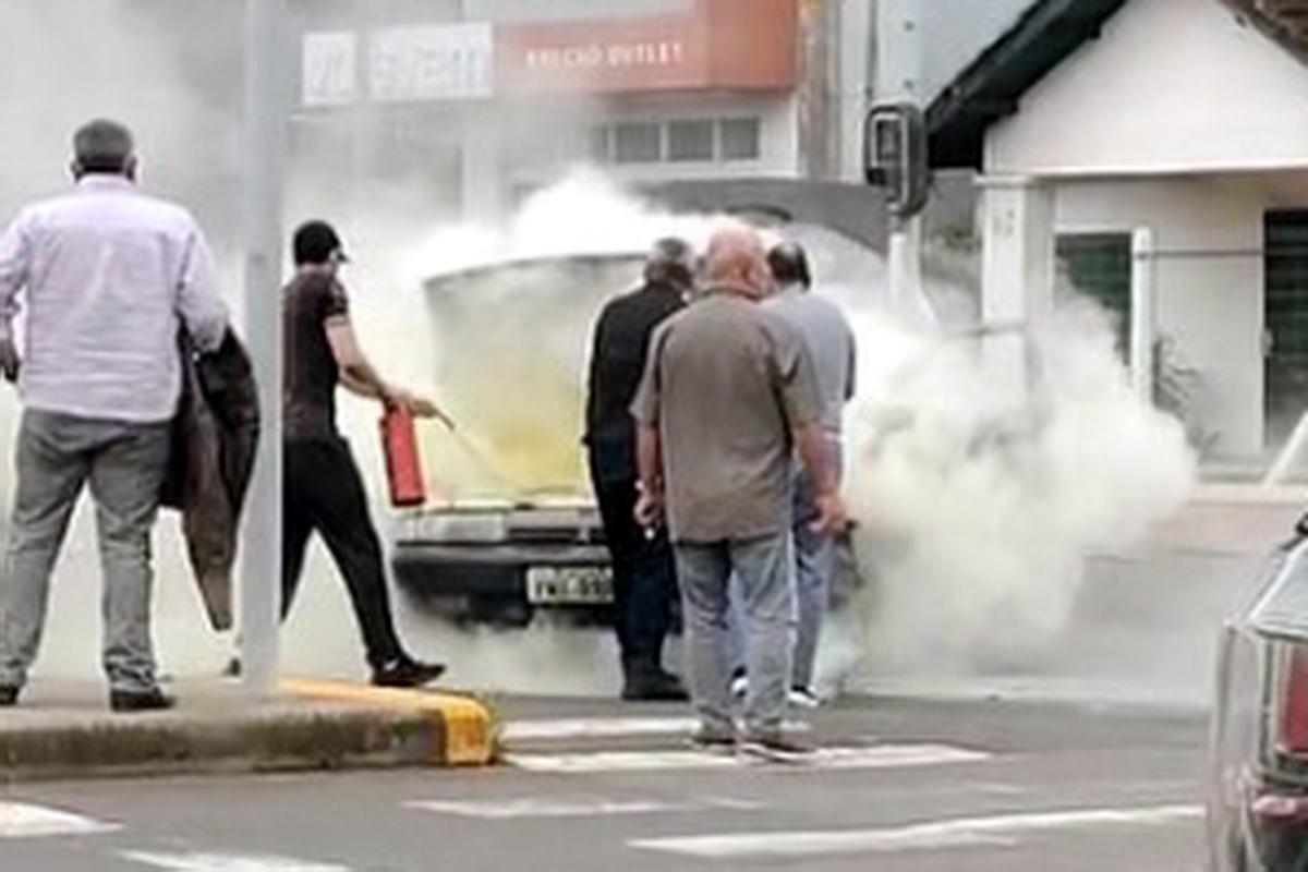 Em questão de segundos, o fogo se iniciou no compartimento do motor, assustando quem passava pelo local.