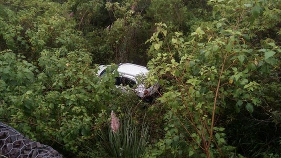Um veículo Toyota Ethios com placas de Caxias do Sul, saiu da pista e caiu em um penhasco nessa terça-feira (30), em Itati.