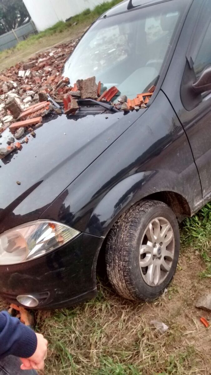 Um muro não resistiu as rajadas e acabou caindo sobre um veículo que estava estacionado em um terreno ao lado do edifício Alfa, na Rua 24 de Maio, no centro da cidade. Ninguém ficou ferido.
