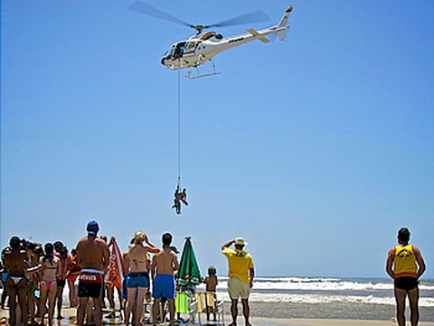 A parte mais emocionante, segundo veranistas, foi a ação de simulação de resgate de vítima de afogamento no mar com o uso do helicóptero da Operação Golfinho. Na exibição, um salva-vidas chega pendurado pelo sling (equipamento de socorro) em um cabo e resgata uma pessoa que tenha se afogado, levando-a para terra onde uma equipe de socorro já está de prontidão para fazer os primeiros atendimentos.