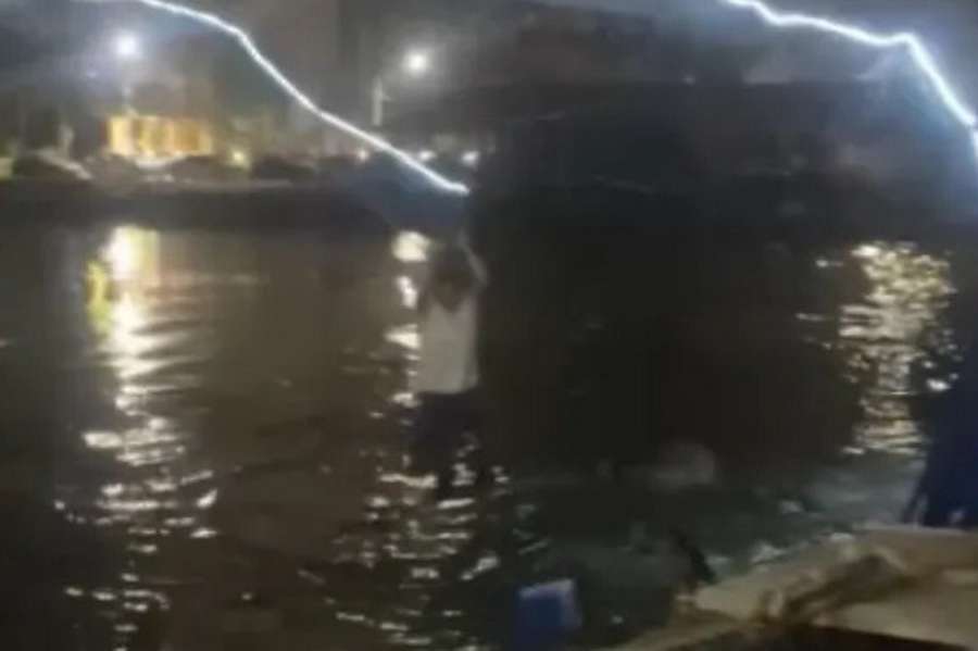 Nas imagens, é possível ver que um homem fica pendurado na ponte para tentar impedir a sua queda.