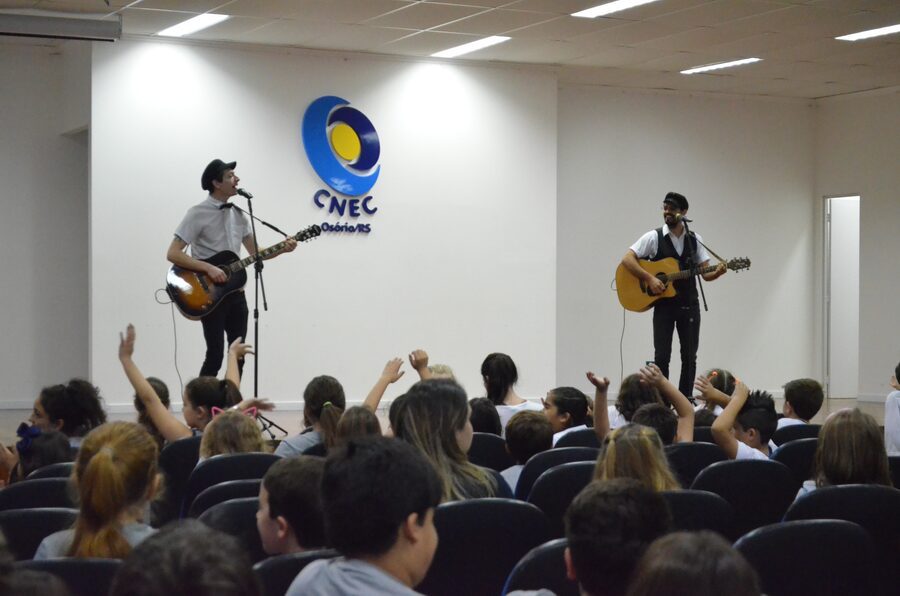 A volta às aulas do Colégio Marquês contou com uma programação especial para as turmas da Educação Infantil e dos Anos Iniciais. Os alunos foram surpreendidos com um show dos Danadões no Auditório Romildo Bolzan. A animação foi garantida: fãs da dupla, os pequenos cantaram junto, dançaram e ainda pediram fotos com os músicos.